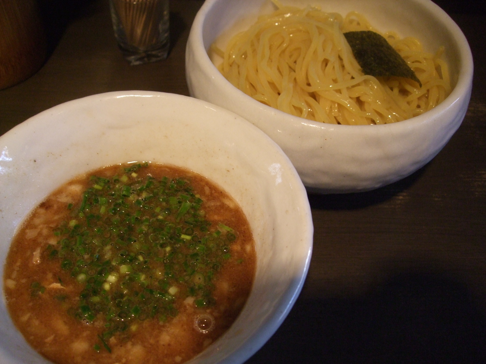 ければ青い暖簾が目印。ここで僕は「浸け豚そば」800円を食べた。暑い日に熱いラーメンもいいが、この日はつけ麺にした。旨い!