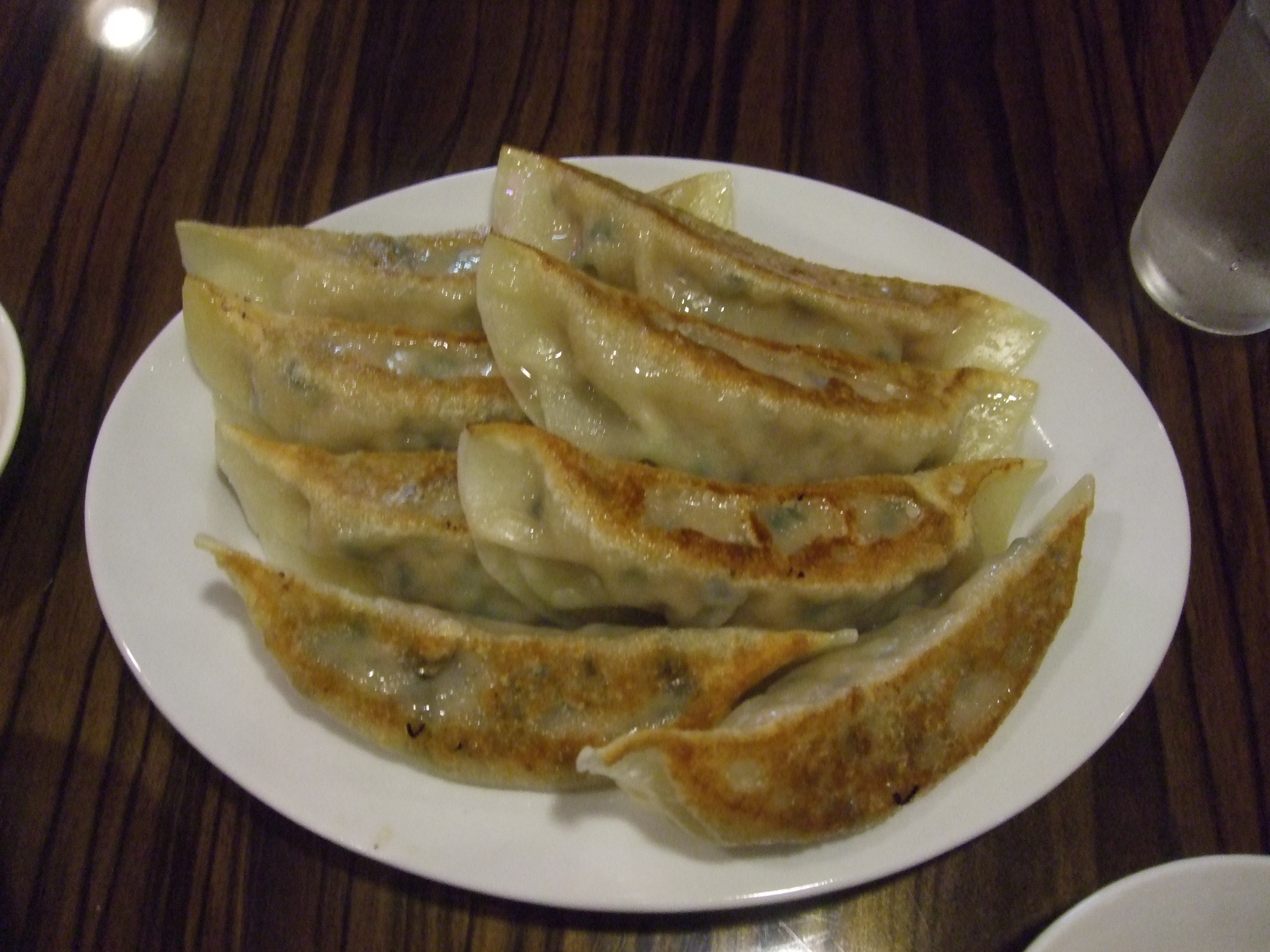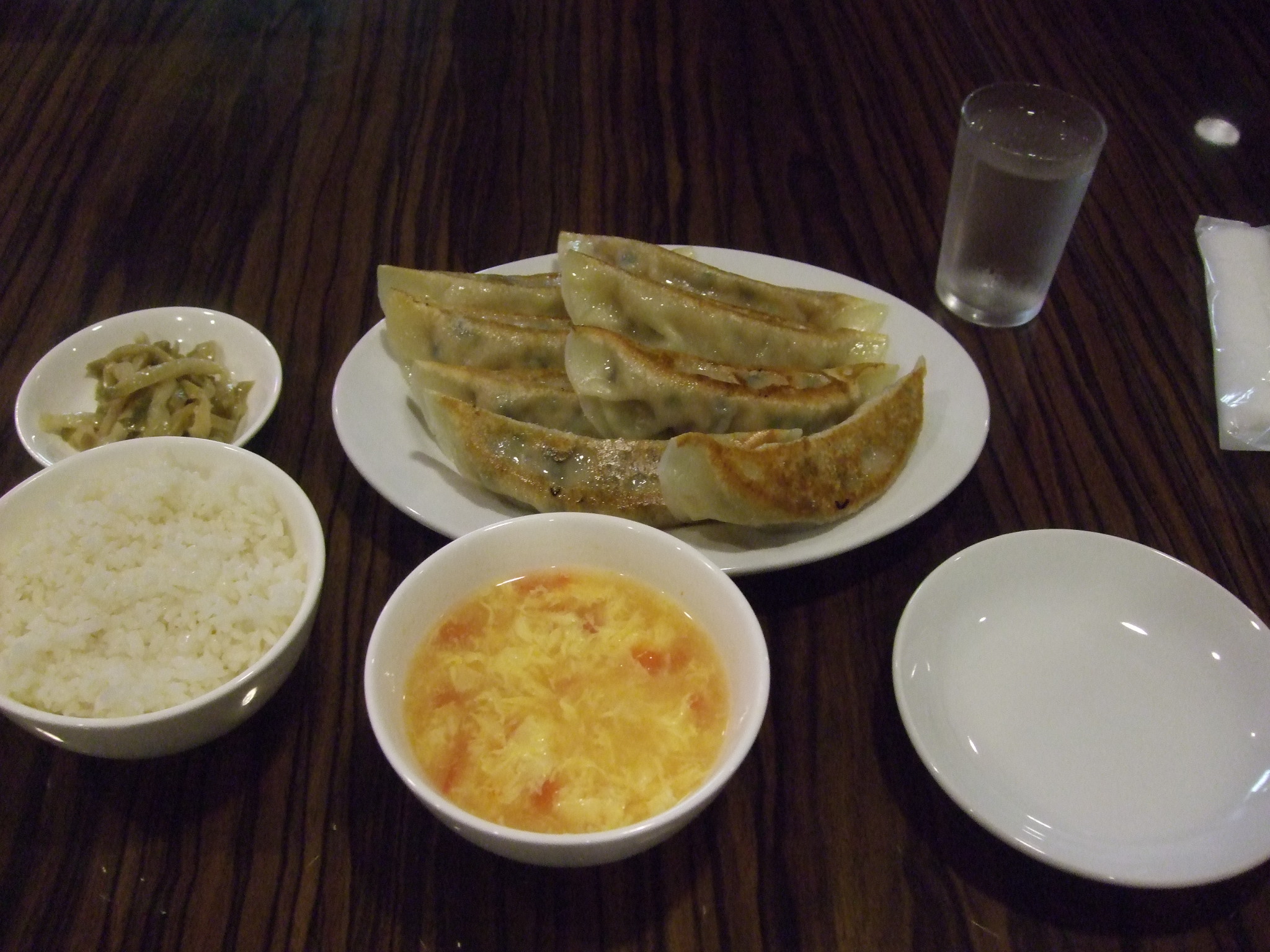 坂を降りたところに「ギョーザ」の赤い幟を発見。