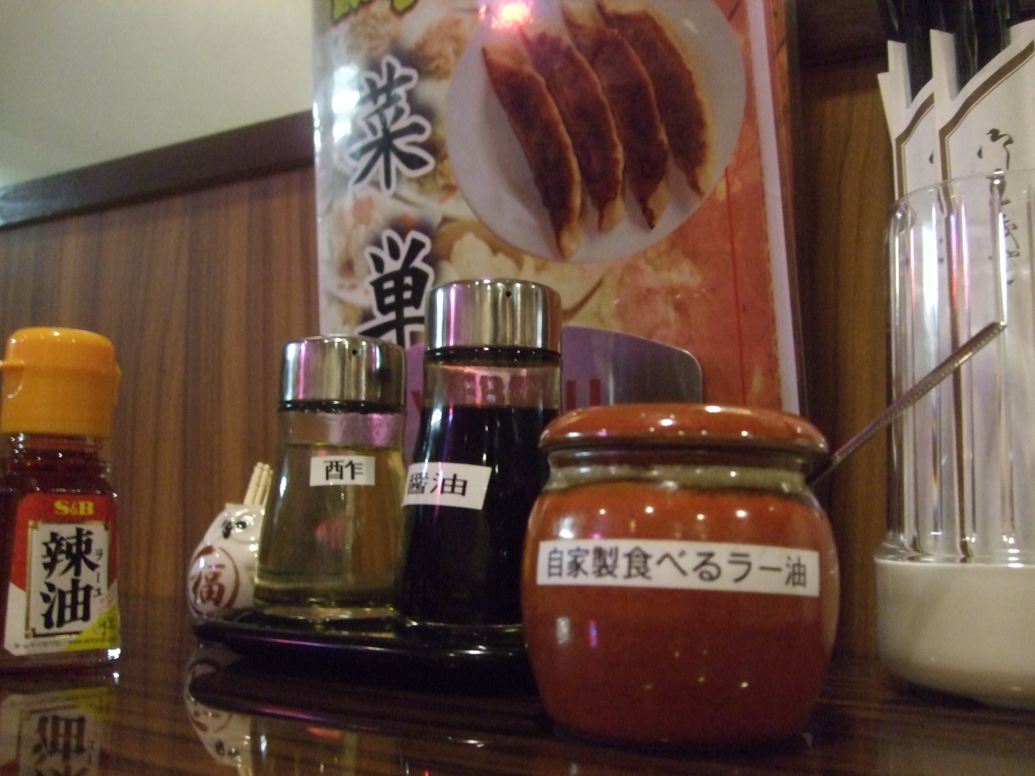 くじけそうになったとき、卓上の食べるラー油などで味を変えて、