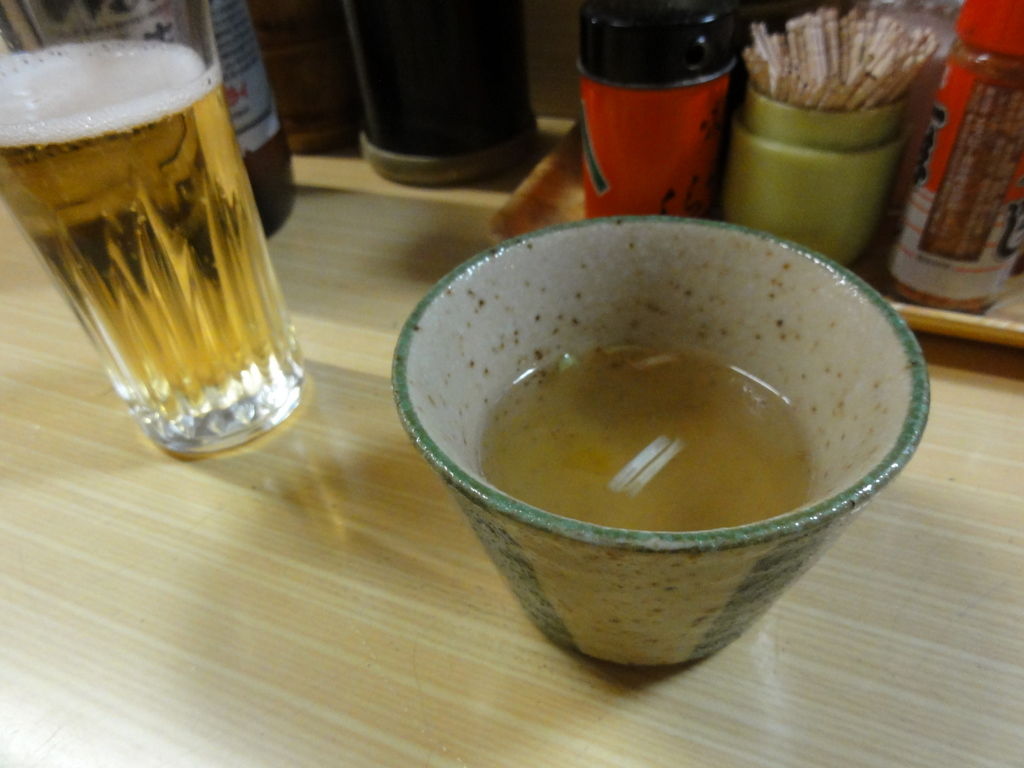 お通しに出てきたのは、鳥のスープである。