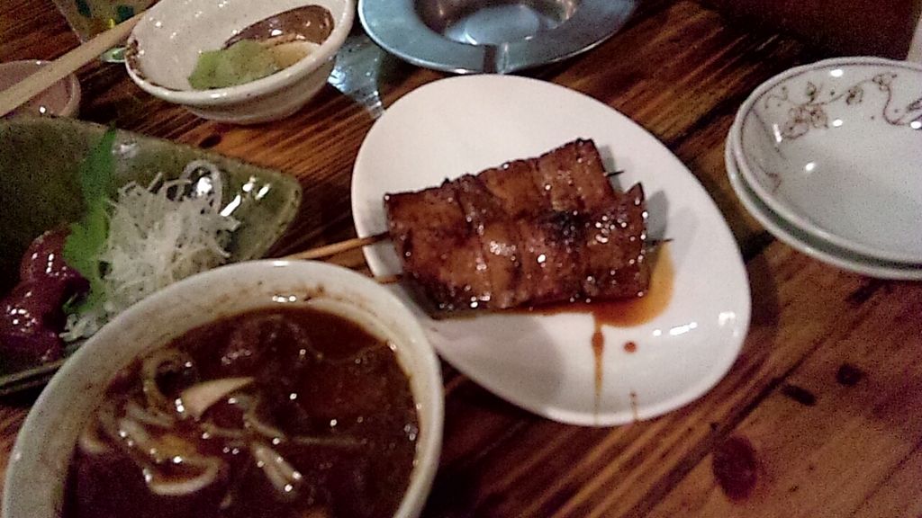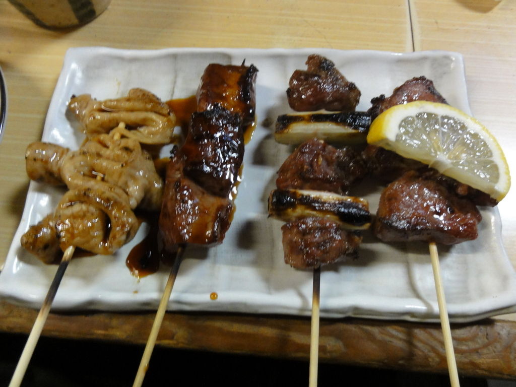 レバ刺しやレバーの焼き物も頼む。