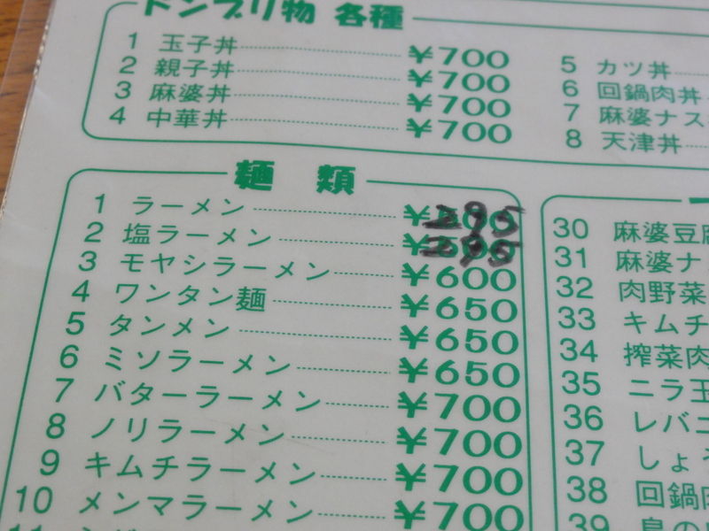 するとどうだろう、ラーメン500円の上に黒マジックで数字が書かれている。