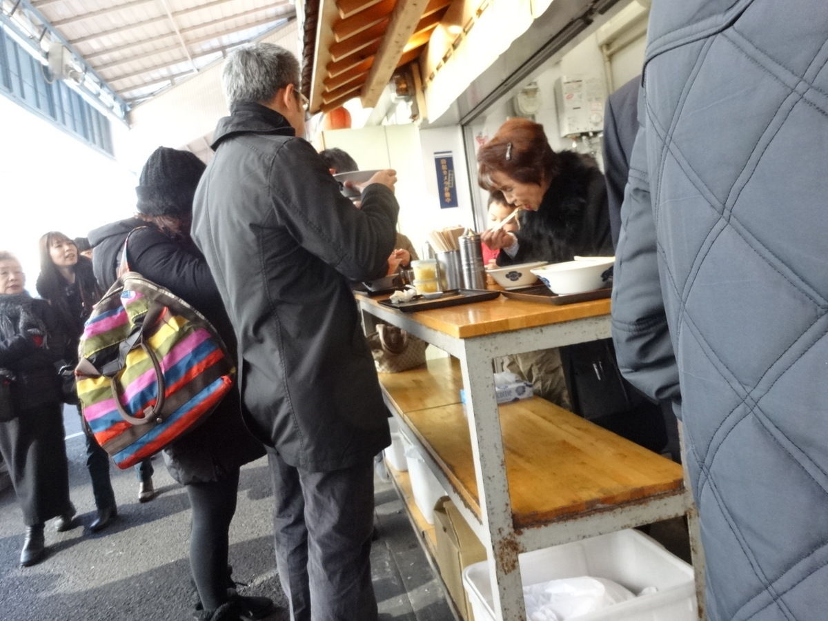 ふらふらと築地へ行くと、やはり井上の前のテーブルで立って食べている観光客が目に入る。