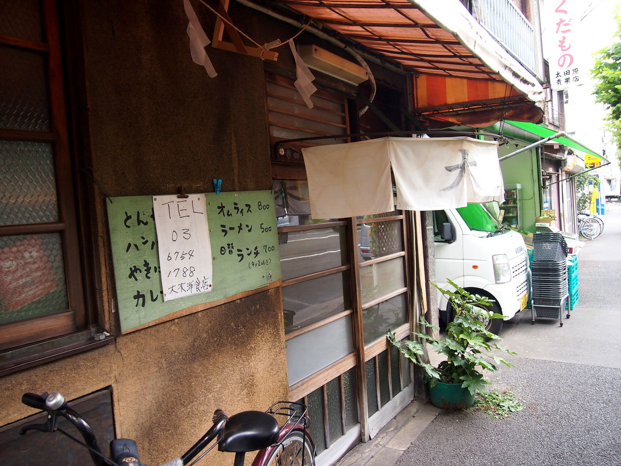 昭和、それも終わり頃ではなく、戦後すぐという頃のまま時間が止まっている。木枠のガラス戸にアーチ型の暖簾もいいかんじ。